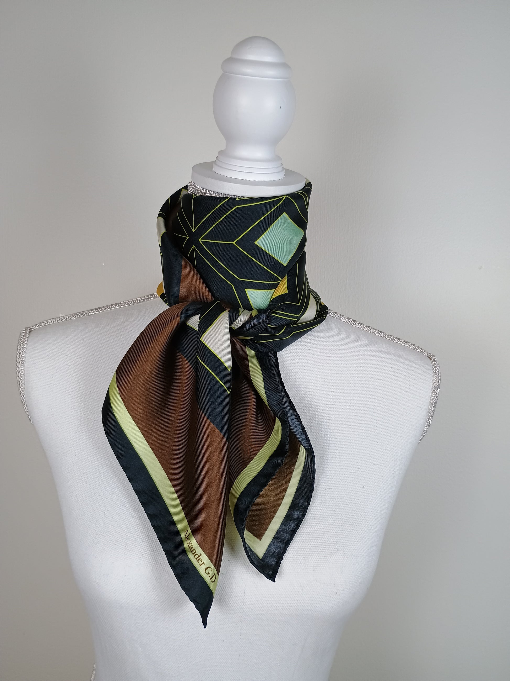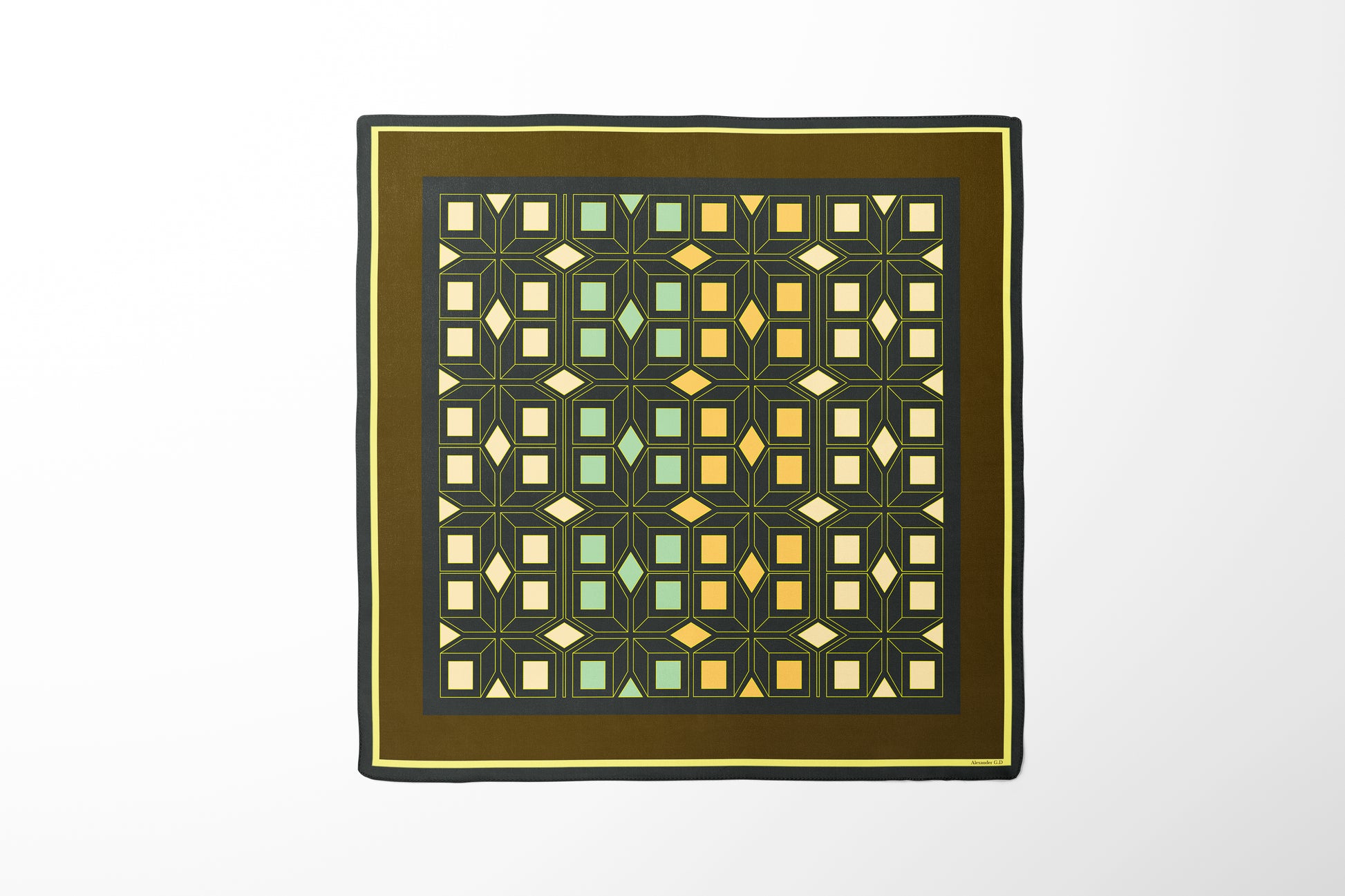 Elevate your accessory collection with this sophisticated silk twill scarf, crafted from pure silk for a luxurious drape and subtle sheen. The Granada features an intricate oriental geometric pattern inspired by traditional wood inlay and stained glass artistry, blending timeless design with contemporary elegance.