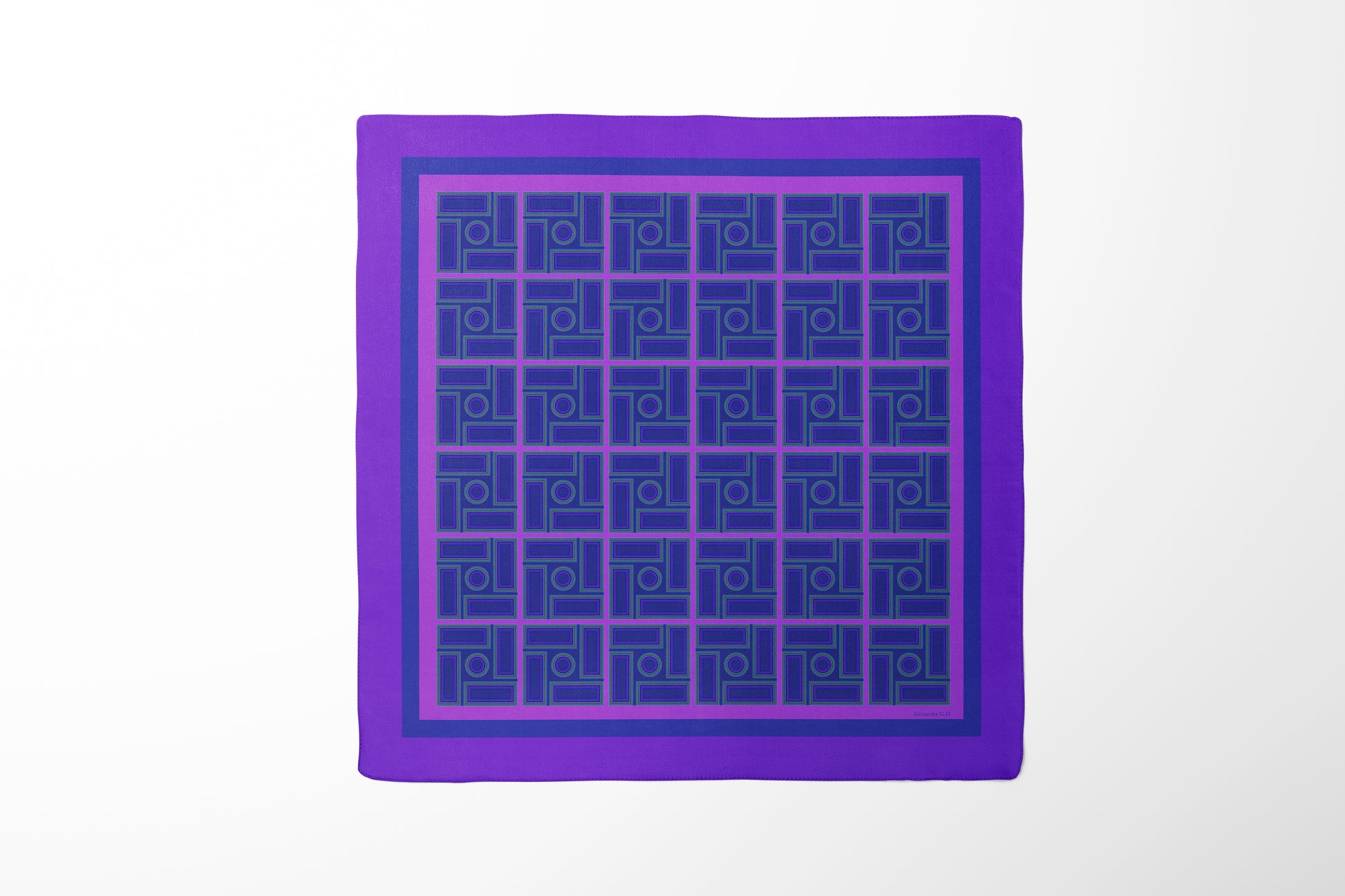 This carf inspired by the intricate frescoed ceilings of ancient Roman architecture. It captures the elegance of classical design in a refined light purple palette. Crafted from premium silk twill, the fabric drapes with subtle sophistication while maintaining its structured form.